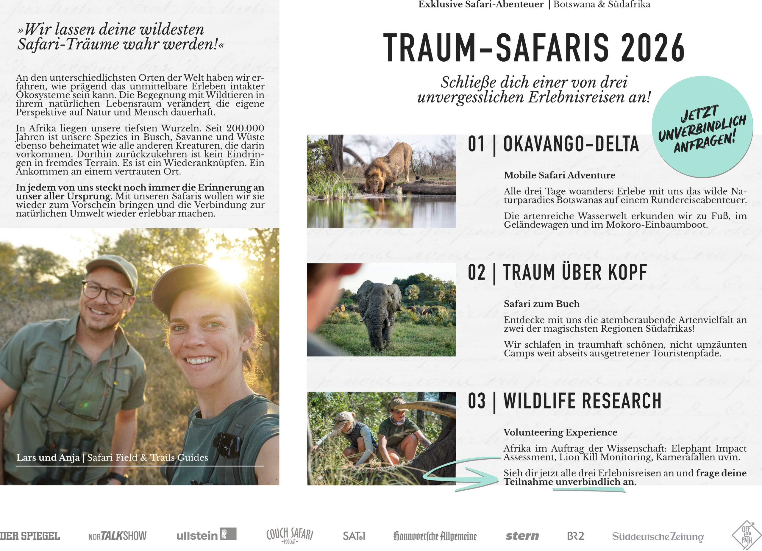 »Für alle, die eine ethische, naturnahe Erlebnisreise abseits des Massentourismus suchen, ist eine Safari mit Anja und Lars eine absolute…